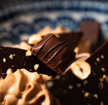 Kinder izozkia, esne txokolatezko aparra, hurren pralinéa eta txokolatea.